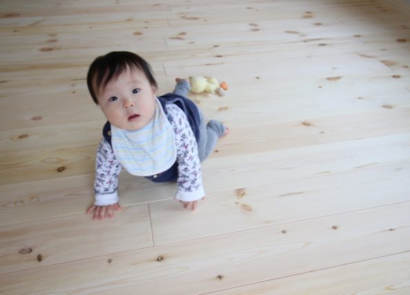 赤ちゃんが喜ぶ無垢材×珪藻土のリビング