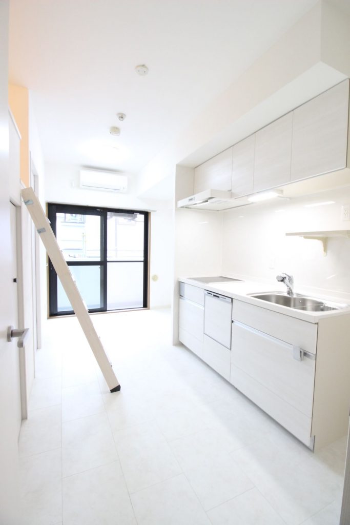 仕切ることで狭さを感じないように、LDKは明るいホワイトで統一しています。