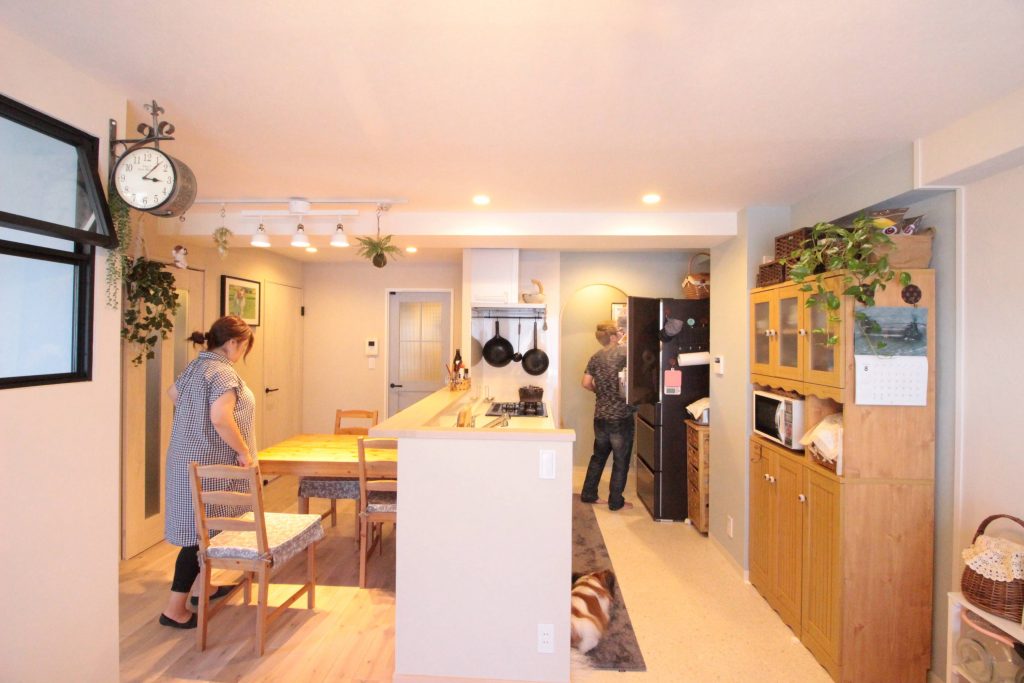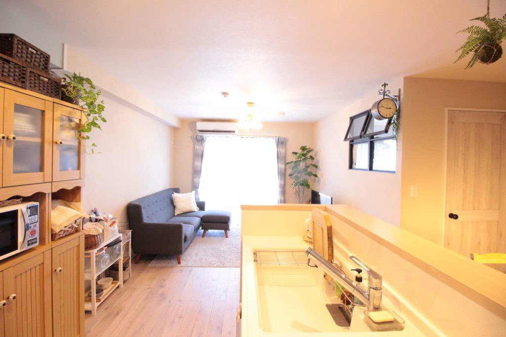 賃貸でお住まいだったお隣の角部屋が売りに出されるとのお話があがり、2方向から海が見えるお部屋のリノベーションとなりました。