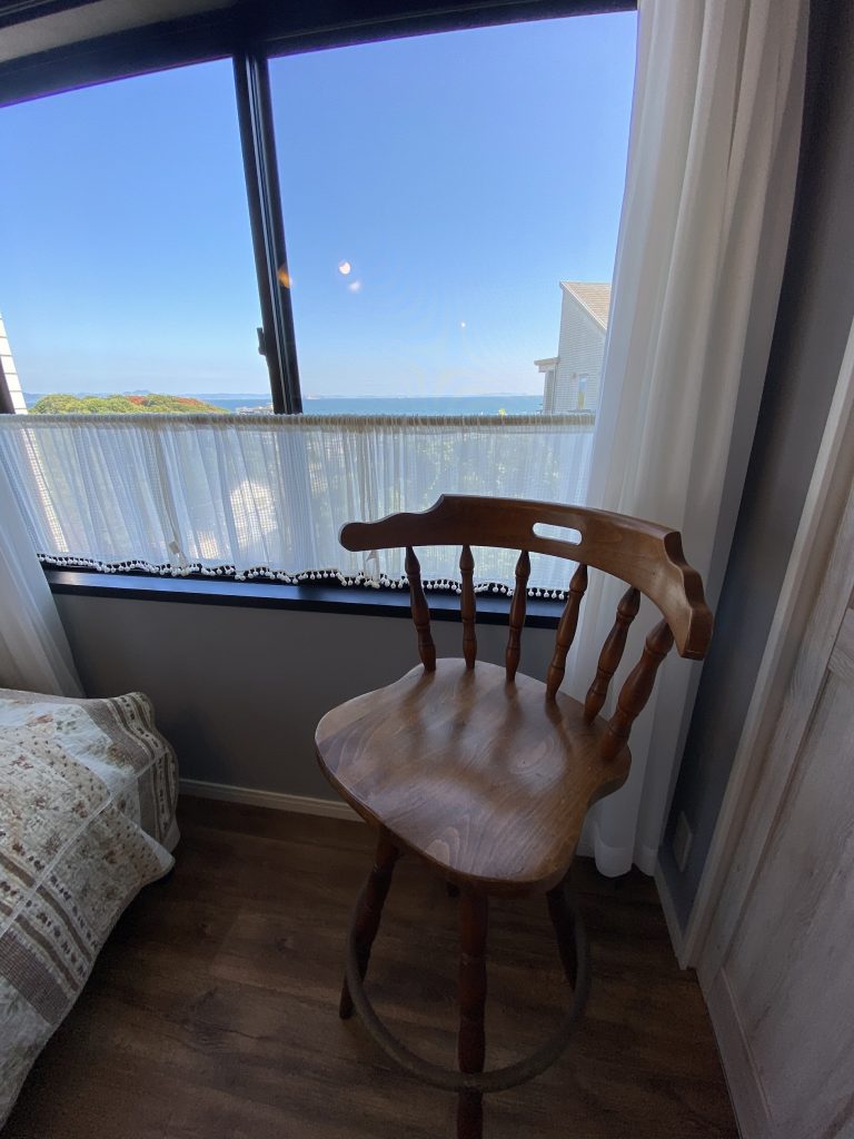 窓際のアンティークチェアーに座って、海を眺めたら、あっという間に時間が過ぎそうです。