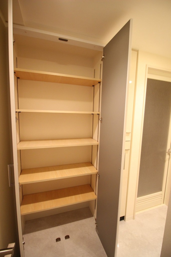 キッチンの間取り変更で生まれた空間に、洗面室用の収納を設けました。